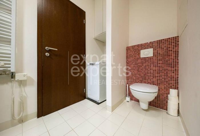 Plne zariadená kuchyňa a kúpeľňa umožňujú zamestnancom výnimočný komfort bytu v kancelárii. Možnosť využiť sprchu v prípade dochádzania bicyklom po nábreží alebo po pauze formou prechádzky či behu počas dňa v nádhernom prostredí karloveského ramena, ako i komfortná možnosť si priamo pripraviť jedlo, či priniesť a uchovať chladené alebo mrazené (k dispozícii varná doska, rúra, MW a veľká chladnička s mrazničkou).