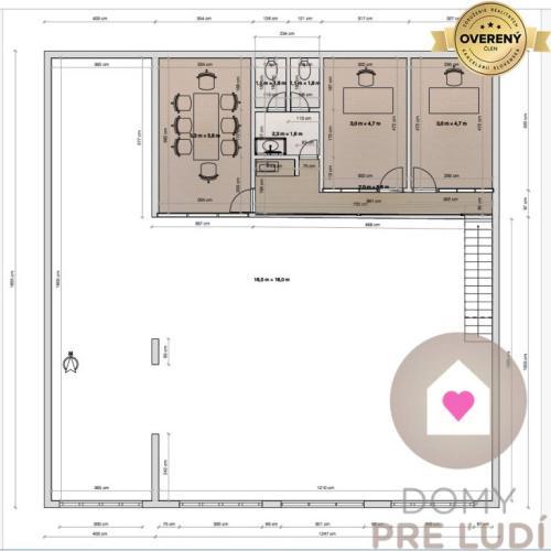 - kancelárske zázemie: 66 m² (3 kancelárie, WC a kuchynka – budú vybudované na vyvýšenom poschodí)