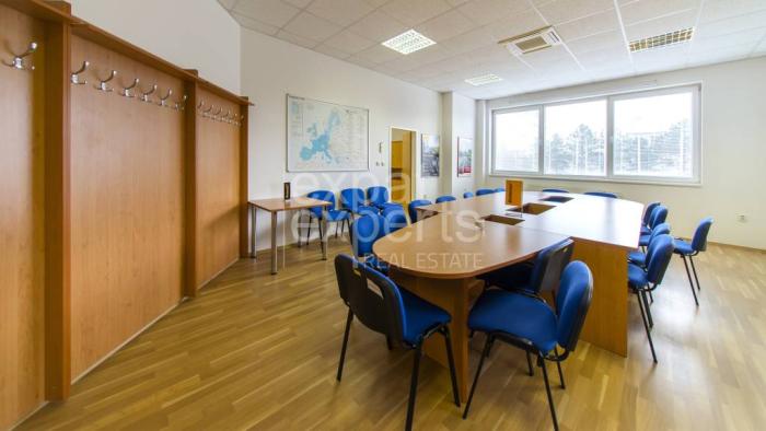 Vstupná hala s recepciou, spoločná kuchynka, sociálne zariadenie, zasadacia miestnosť, 4x samostatná kancelária.