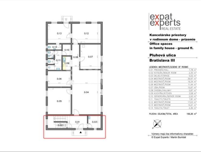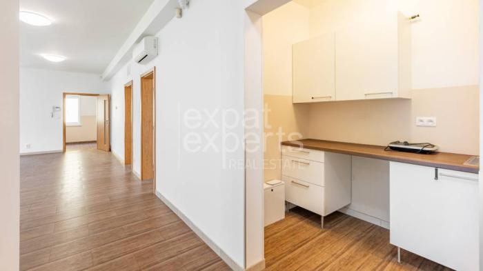 EXPAT EXPERTS | PRENÁJOM - Svetlé kancelárske priestory s klimatizáciou a podlahovým kúrením, na 1.poschodí rodinného domu - čistá plocha je 148m2 plus vstupné zádverie, schodisko a technická miestnosť.