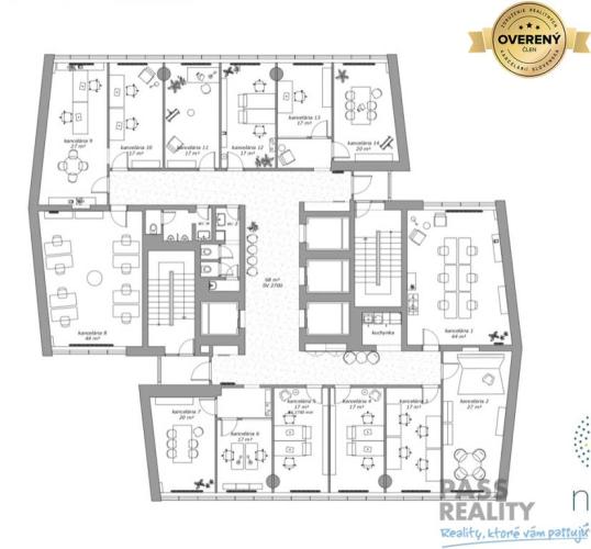 Kancelárie je možné flexibilne spájať a deliť podľa požiadaviek a potrieb klienta.
