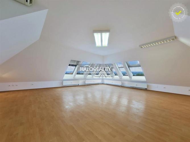 Ponúkame na prenájom atypický kancelársky priestor v podkroví (Open Space Office alebo Ateliér) v Bratislave na Kolibe v mestskej časti Nové Mesto Vinohrady, situovaný v administratívnom objekte na 4/4 poschodí v podkroví (bez výťahu) s panoramatickým výhľadom na mesto. Na tomto poschodí je iba jediný priestor. Priestore je možnosť zriadenia: kozmetické štúdio, prípadne zriadenie ateliéru napr. pre grafické štúdio alebo architektonické štúdio, ale aj modernú kanceláriu Open Space Office.