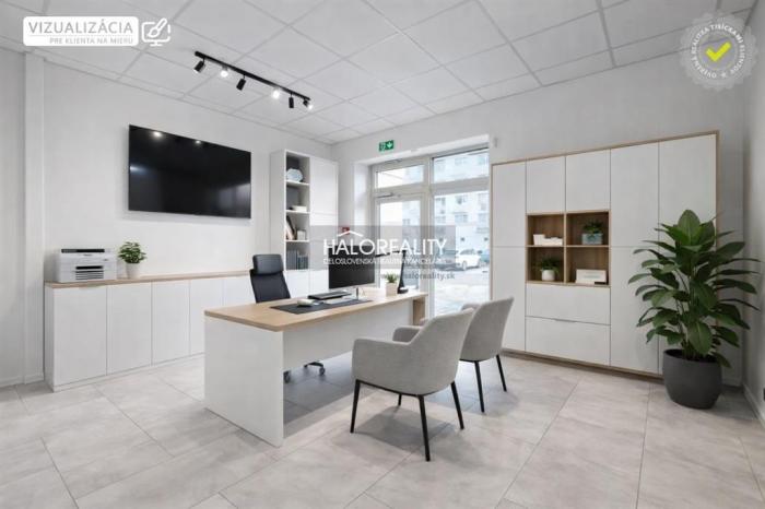 DISPOZÍCIA: Priestor je dispozične členený – tvorí ho hlavná miestnosť (vhodná ako prevádzka/recepcia alebo pracovná časť), ďalšia samostatná miestnosť a ešte jedna menšia miestnosť využiteľná ako sklad, archív či tiché zázemie. Súčasťou je aj samostatné WC s umývadlom.
