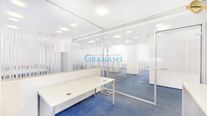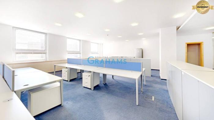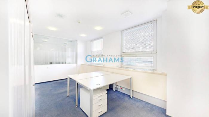 Dispozícia: aktuálne je priestor upravený na 8 presklených uzatvárateľných kancelárií, 2 murované kancelárie, 2 otvorené priestory, kuchynka, toalety, zvlášť dámske a zvlášť pánske. Celé dispozičné riešenie je možné upraviť podľa požiadavky nájomníka.