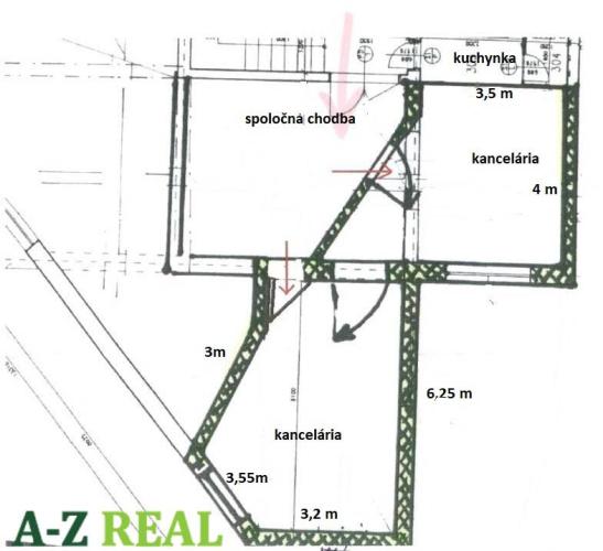 kancelárie o celkovej výmere 46 m2 sa nachádzajú na 1.poschodí - dve samostatné kancelárie, vzájomne prepojené, v menšej miestnosti umývadlo