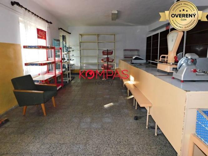 Budova sa nachádza v strede obce, teda výborná poloha na prevádzkovanie podnikateľskej činnosti. Pred vstupom do prednej časti je terasa pre návštevníkov pôvodnej krčmy. Druhá časť je zariadená ako obchod a je tu možnosť v tejto prevádzke ďalej pokračovať. Prevádzka tejto budovy je momentálne pozastavená, no nový majiteľ sa môže realizovať v podnikaní. Podkrovné miestnosti sú vhodné na prenájom, či prerobenie si celého podkrovia na obytnú časť. Budova má aj prízemnú garáž a nevyužitú záhradu za domom, kde sú posadené ovocné stromy. Ak Vás táto ponuka zaujala, volajte a objednávajte sa na obhliadky.