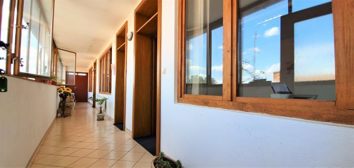 Obytná časť sa nachádza na II. NP v prednej časti polyfunkčnej budovy nad obchodom a barom. Je prístupná cez betónové schodisko z Hlohovej ul. Dispozícia 1,5i bytu (49,02 m2): chodba, WC, kúpeľňa, kuchyňa, komora, izba a balkón. Dispozícia 2i bytu (44,28 m2): chodba, WC, kúpeľňa, kuchyňa a 2x izba.