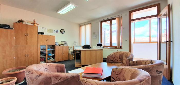 Administratívna časť sa nachádza na II. NP v zadnej časti objektu. Je prístupná cez kovové schodisko z kovovýroby a tiež cez schodisko z Hlohovej ul., ktoré vedie k obytnej časti objektu. Dispozícia: priestor spojovacej chodby, kúpeľňa, WC, archív a 2x kancelárie. Administratívna časť bola koncipovaná s možnosťou jej premeny na obytnú časť s troma bytmi.