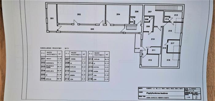 Pôdorysy polyfunkčného objektu s dispozíciou jednotlivých miestností, ich výmerami a usporiadaním sa nachádzajú vo fotogalérii.