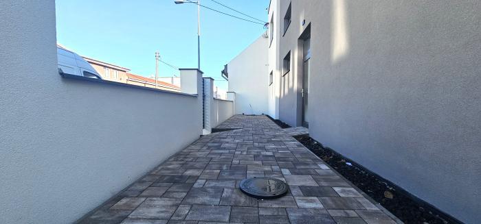 Dĺžka murovanej garáže s automatickou bránou je 7,87 m, šírka 3,08 m s úžitkovou plochou 24,24 m2. Na ľavej strane garáže sa nachádza okno.