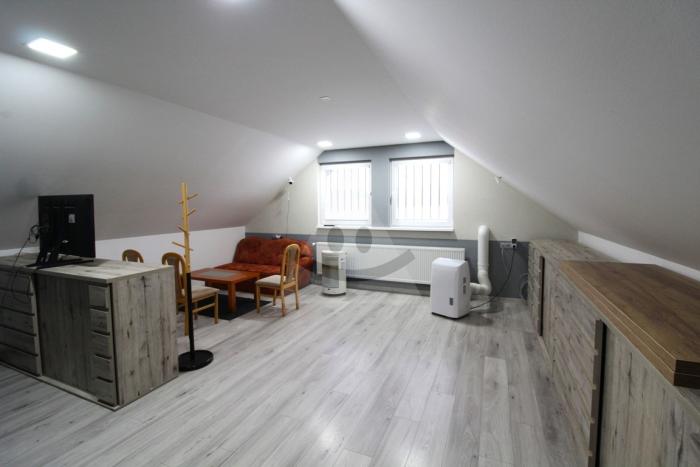 Reality Alpia Vám ponúkajú na predaj podnikateľský objekt /440 m2/, Hôrky - Žilina. Objekt prešiel rekonštrukciou v roku 2023, kedy boli osadené plastové okná, budova bola zateplená a bola zrealizovaná nová plechová strecha. Dispozične pozostáva zo skladových, výrobných a administratívnych priestorov. Priestory sú rozdelené na tri časti. Administratívne priestory vo výmere 85 m2 - 1x kancelária, 1x kancelária s kuchynským kútom, sociálne zázemie, zvyšný priestor tvorí hala o celkovej výmere 355 m2, ktorá aktuálne slúži ako sklad. V zadnej časti haly sa nachádza oddelený priestor, ktorý je možné využiť a upraviť podľa vlastných predstáv o výmere cca 100 m2 (súčasťou tohto priestoru je 1x elektrická brána. Súčasťou haly je 1 x elektrická brána, podlahy sú betónové, svetlá výška skladového priestoru je 2,5 m. Výhodami sú dobrá dostupnosť, lokalita a vykurovanie celého priestoru peletovým kotlom. Aj v hale je k dispozícii sociálne zariadenie. Všetky merania sú riešené samostatne. Bonusmi sú zabezpečenie areálu kamerami, alarmom a zamrežované okná. Parkovanie pred budovou. Objekt je vhodný pre obchodnú činnosť, e-shop alebo akúkoľvek prevádzku, ktorá potrebuje kancelárske zázemie ako aj skladové prípadne výrobné priestory. Energetický certifikát nebol vyhotovený. Viac informácií Vám radi poskytneme na tel.č.: 0905 550 320 alebo na manduchova.realityalpia@gmail.com