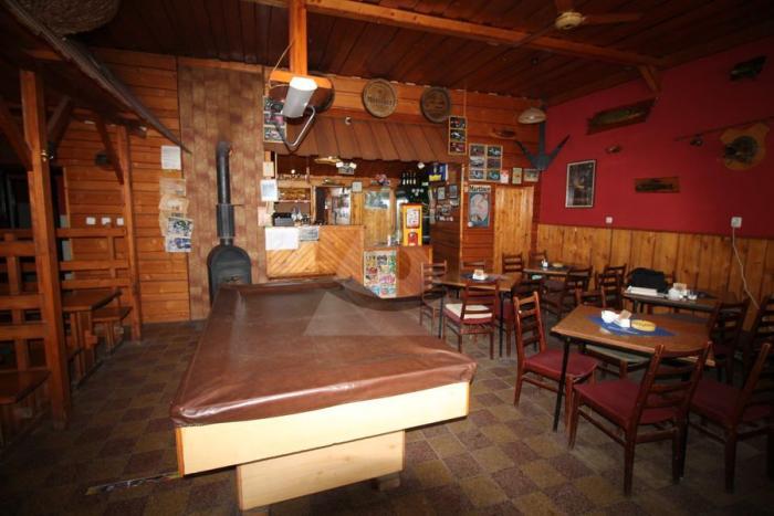 Budova je postavená z tehly a je čiastočne podpivničená. Vek budovy je cca 35 rokov. V budove sa momentálne nachádzajú zabehnuté prevádzky pohostinstva s obrovskou krytou terasou a detským ihriskom a prevádzka potravín. Je možné pokračovať ďalej v prevádzkovaní daných zariadení. Strecha je sedlová, s eternitovou krytinou. Rekonštrukciou strechy je možné dosiahnuť v podkroví budovy veľkorysý priestor možný využiť napríklad na penzion. Kúrenie je na pevné palivo, za domom sa nachádza samostatná kotolňa, v prevádzke pohostinstva je krbová pec, plynová prípojka sa nachádza priamo pri nehnuteľnosti. Okná sú kovové zdvojené.