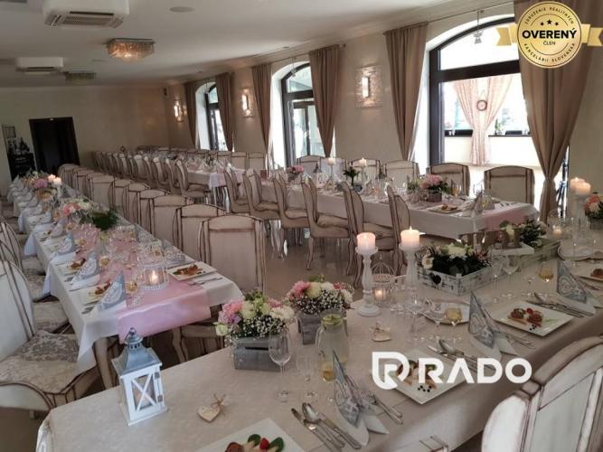 Je možné mať aj dve menšie oslavy alebo svadby naraz vďaka tomu, že je priestor predelený veľkými dverami s trojsklom, ktoré dobre izolujú hluk.