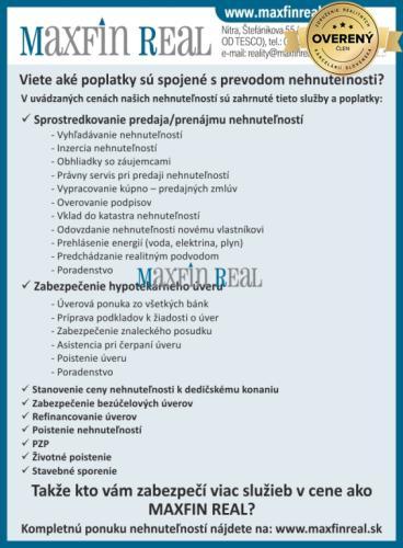 Maxfinreal ponúka na prenájom kanceláriu, ktorá sa momentálne rekonštruuje. Rozloha kancelárie je 17m2. Nachádza sa na 1. poschodí v polyfunkčnej budove v Nitrianskej mestskej časti Chrenová. Kancelária je vymaľovaná na bielo. Okná sú plastové. Na podlahe bude položená laminátová podlaha. Budova je zateplená a je monitorovaná kamerovým systémom. V okolí je kompletná občianska vybavenosť. Bezproblémová napojenie na R1 (BA - BB). Možnosť zobrať viac kancelárií v danom objekte.