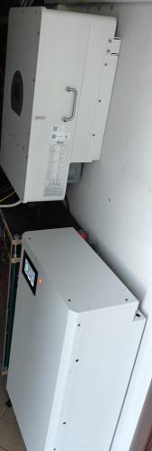 Fotovoltika a úložisko: 12 kWp v paneloch na streche + 10 kW hybridný menič Deye + 30 kWh batériové úložisko. Od jari do jesene budova funguje prakticky zadarmo.