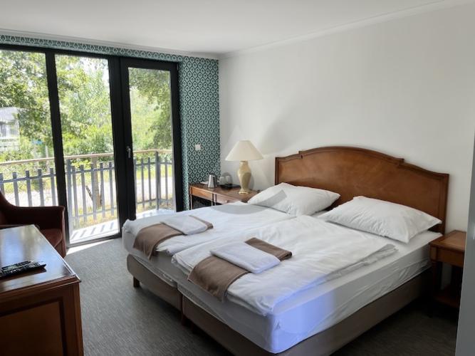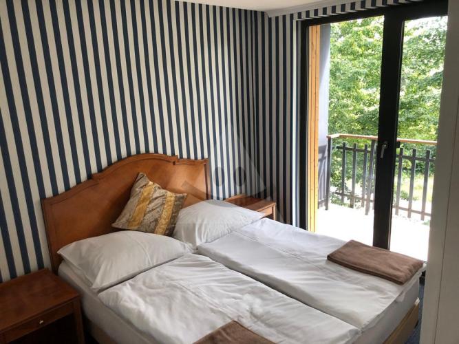 vodovod, kanalizáciu internet a TV. Pozostáva z dvoch nadzemných podlaží, rozdelenie jestvujúcich apartmánov je 6 jednoizbových - 24m² a 6 dvojizbových - 39 m², každý s vlastnou terasou alebo balkónom. V exteriéri sú trávnaté plochy, okrasná záhrada a spoločné parkovisko pre 12 automobilov. Kompletná rekonštrukcia bola dokončená v roku 2023.