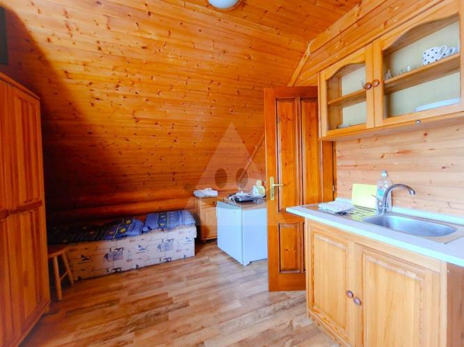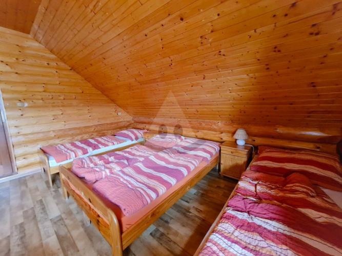 V nesposlednom rade spomenieme, tretiu budovu, ktorou je krásny drevený zrub. Zrub má aj technické miestnosti na uskladnenie prádla, hygienických potrieb a druhú miestnosť na uskladnenie náradia. Výmera pozemku je o rozmere 1200 m2. V zadnej časti areálu je rozsiahly altánok s možnosťou grilovania a veľké parkovisko.