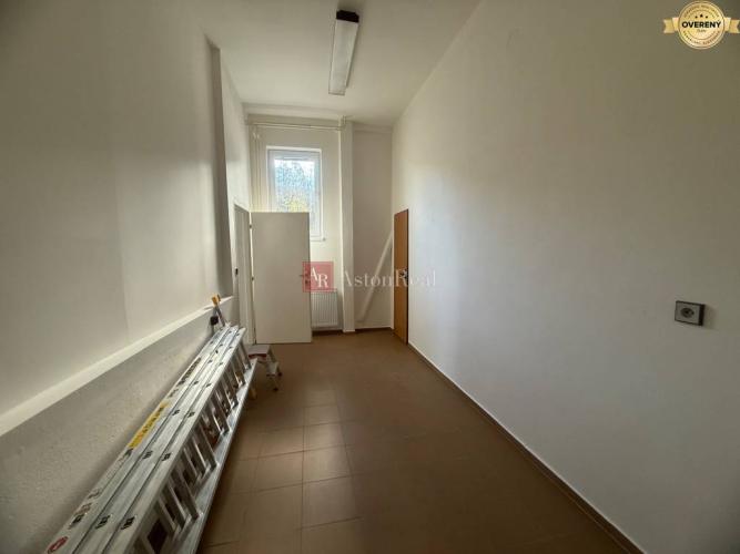 Priestor o rozlohe 160,30 m2 sa nachádza na prízemí s vlastným vchodom od hlavnej cesty s možnosťou vlastného vyhradneného parkovania pre 8 áut. K dispozícii je zasadacia miestnosť, kancelária, predsieň, sklad, kuchynka, sklad, WC ženy, WC muži, sklad pod schodiskom.