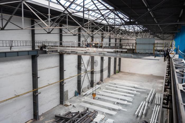 Je postavená zo železných zvarovaných a lisovaných plnostenných profilov v tvare I o rozmeroch 800 x 300 mm. Jedná sa o jednoloďovú halu so vzdialenosťami väzníkov 18 m, jej opláštenie tvoria tehly o šírke 25 cm. Strecha je pokrytá lepenkou. Hala bola postavená v roku 1975.Rozmery haly: dĺžka 60 m, šírka 20 m = 1 200 m², výška 13 m. V dĺžke 40m je hala vykurovaná plynovými žiaričmi V hale sa nachádzajú dva mostové žeriavy s nosnosťou 3,2 tony a 10 ton – o rozpätí ramena 17 m. Horný pás žeriavovej dráhy je na výške 11 m.