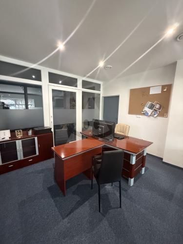 Výnimočná poloha: Priamo v centre mesta, s výbornou dostupnosťou a viditeľnosťou.Moderné vybavenie: Plastové okná a elektrické automatické dvere pre váš komfort a bezpečnosť.Efektívne kúrenie: Plynové podlahové kúrenie zabezpečuje príjemnú teplotu počas celého roka.Dispozícia: Vstupná chodba a dve samostatné kancelárie s vlastným uzamykaním.Priestor: Dve kancelárie s výmerou 16 m² každá, ideálne pre menšie tímy alebo individuálnych podnikateľov.Priamy vstup: Vstup do objektu priamo z hlavnej ulice, čo zvyšuje prístupnosť pre klientov.Ďalšie informácie: