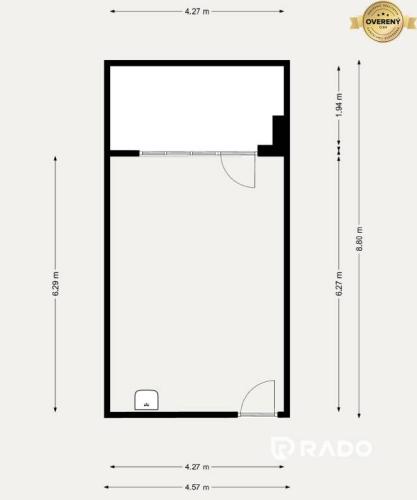 Okrem samotnej kancelárie máte k dispozícii aj zdieľaný priestor s toaletami o výmere 6,41 m².