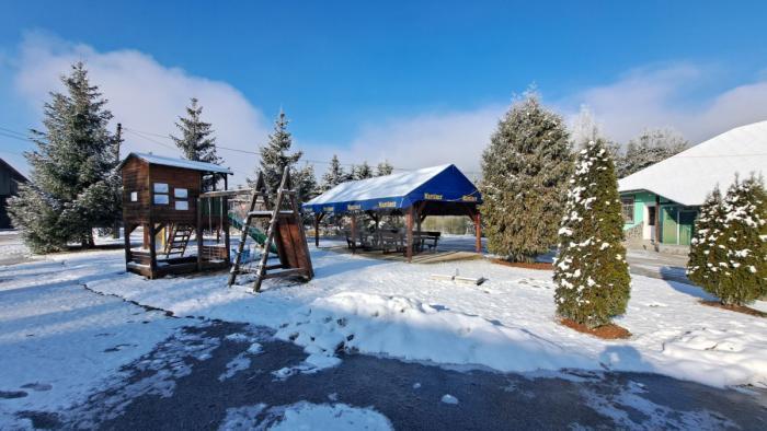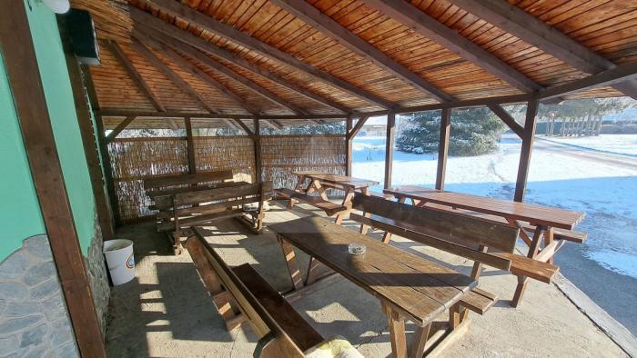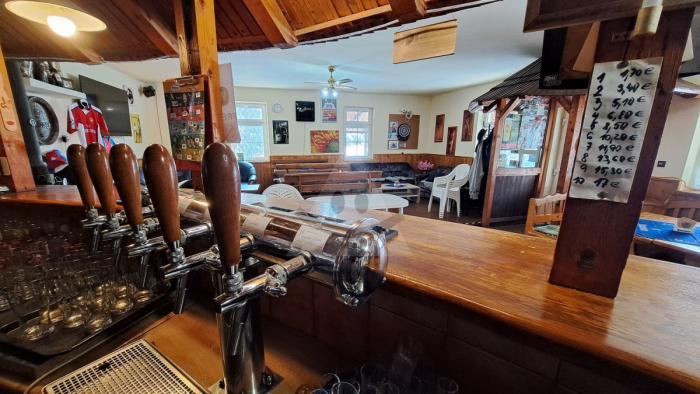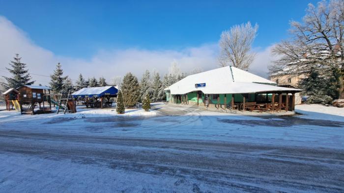 - pohostinstvo: hlavná miestnosť s barom, stolmi a stoličkami pre hostí- sociálne zariadenie- skladový priestor- terasa s detským ihriskom a vonkajší priestor s možnosťou sedenia- predajňa potravín- priestor na skladovanie všeobecných zásob a inventára pre prevádzku.