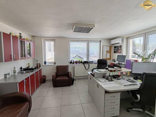 Vnútri nájdete reprezentatívne kancelárske priestory s keramickou dlažbou, sociálne zariadenia so sprchou.