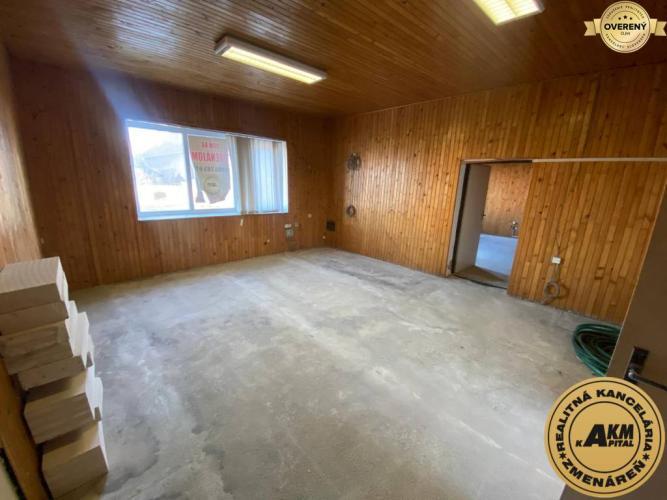 Tento dom ponúka možnosť rekonštrukcie podľa vlastných predstáv a využitia buď na bývanie, alebo ako administratívne priestory. Toho času slúžil na ubytovanie pre robotníkov. Zvislé nosné konštrukcie - kamenné murivo v hrúbke do 60 cm, priečky tehlové. V prednej časti domu sú 2 veľké miestnosti, chodba a sociálne zariadenie o rozlohe 104 m2. V ďalšej časti domu sú 3 izby s kúpeľňou o rozlohe 140 m2. Kúpeľňa a WC sú v pôvodnom stave. Táto časť domu má podlahové kúrenie. Priestory je vhodné upraviť, keďže sa jedná už o staršiu rekonštrukciu. V dome je dostatočná kapacita elektriky, hlavný istič má hodnotu 3 x 63 A. Rodinný dom bol daný do užívania v roku 1952. Stavba je situovaná v jestvujúcej zástavbe rodinných domov s priamym vstupom z miestnej verejnej asfaltovej komunikácie.