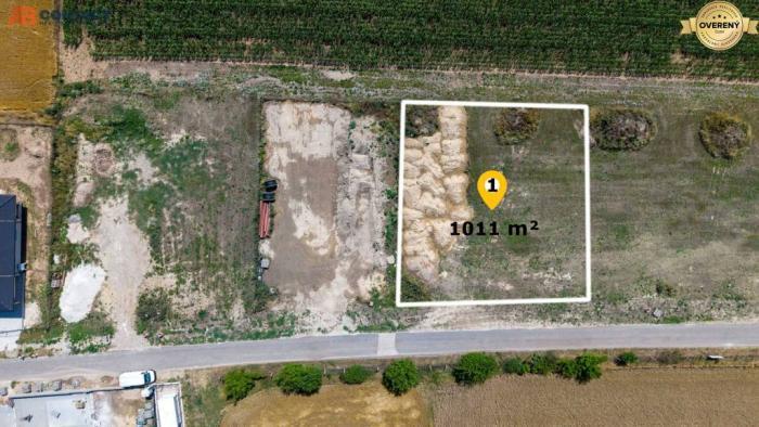 1. pozemok s výmerou 1011 m² (vstupná šírka 29 m, dĺžka pozemku 34 m), cena 95 €/m²