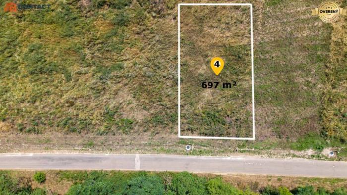 4. pozemok s výmerou 697 m² (vstupná šírka 18 m, dĺžka pozemku 38 m), cena 110 €/m²