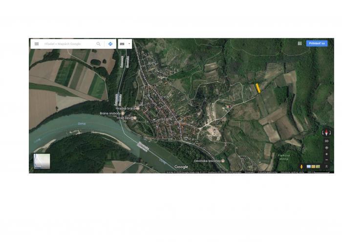 Exkluzívne iba v PNORF – REAL ESTATE ponúkame na predaj lukratívny pozemok južnej orientácie nad obcou Devín s panoramatickým výhľadom na pohraničné hrady a povodie rieky Dunaj. Pozemok je prístupný z obecnej spevnenej cesty. Od cesty má šírku 21 m a na opačnej strane 17 m. Nehnuteľnosť je kombináciou parciel ovocného sadu, vinice, ostatných a zastavaných plôch.