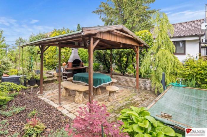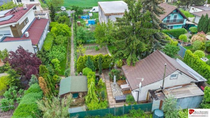 Na pozemku sa nachádza záhradná chatka o výmere 38 m2 - čiastočne podpivničená (12 m2) a murovaná garáž o výmere 25 m2.