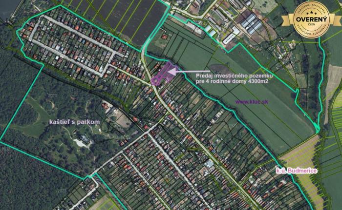 Novinka: Kľúč RK ponúka: investičnú príležitosť- veľký pozemok 4882m2 rozdelený na 4 stavebné pozemky v Budmericiach, okres Pezinok.