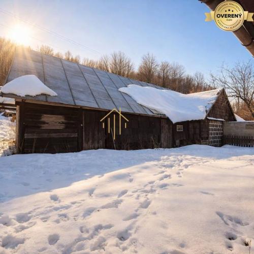 Na pozemku je starý rodinný dom na zbúranie s dvomi súpisnými číslami a drevenica bez súpisného čísla