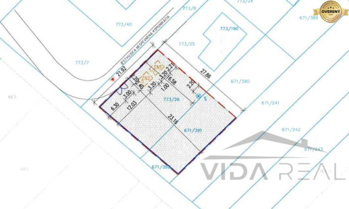 • Výmera: 674 m² (22 × 28 m) + podiel na prístupovej ceste