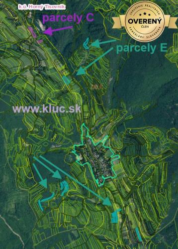 - ornú pôdu aj zarastené pozemky, cca. 20 parciel od 1000m2 do 6000m2, spolu cca. 4ha