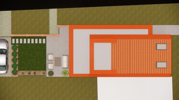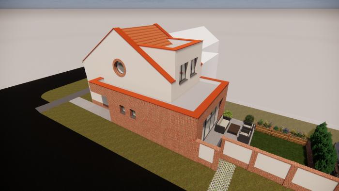 Súčasťou ponuky je aj vizualizácia moderného 4-izbového rodinného domu, ktorá poskytuje inšpiráciu na budúce využitie priestoru.