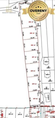 Výmery pozemkov sú od 686m², obdĺžnikový tvar so šírkami od 20 m x 30 m dĺžka.