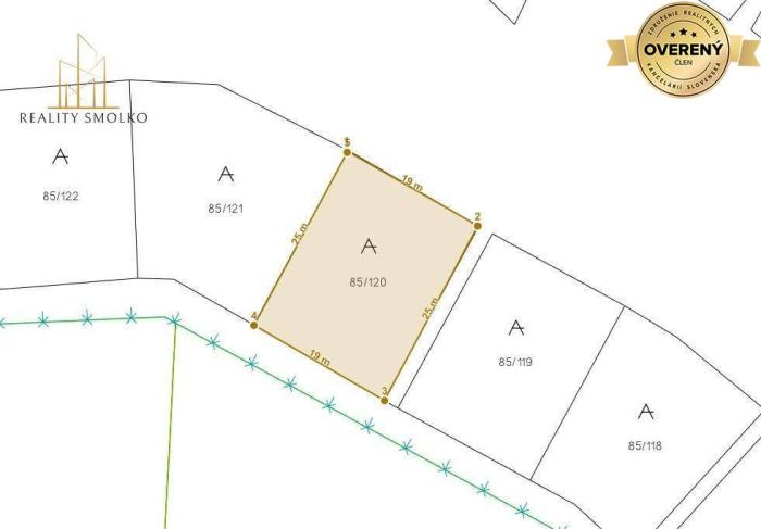 rozmery ideálne na výstavbu – šírka 19 m, dĺžka 25 m