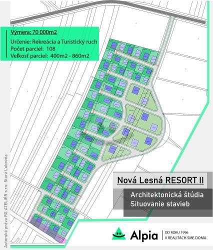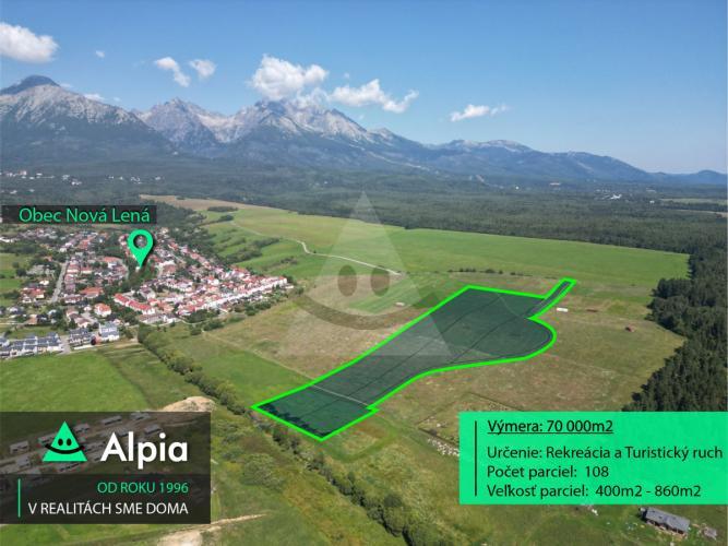 • Lokalita a prístupnosť: Pozemok je situovaný južne od obce Nová Lesná. Jeho atraktivitu zvyšuje výborná dostupnosť, keďže sa nachádza len 8 km od Popradu a letiska Poprad – Tatry, 5 km od mesta Vysoké Tatry a 8 km od Tatranskej Lomnice.• Charakteristika pozemku: Má slnečnú polohu, ktorá je ideálna pre nízkoenergetické stavby s vysokou využiteľnosťou solárnych ziskov. Pozemok je vedený ako orná pôda.• Projekt a regulatívy: Pre pozemok bol vypracovaný ideový zámer zastavanosti, ktorý je možné prispôsobiť zámerom investora, pričom sa dodržiava regulatív zastavanosti 20 %. Rovnako bol spracovaný aj návrh dopravnej siete, ktorý je v súlade s platným Generelom dopravy pre obec.
