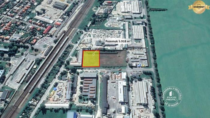 Realitná kancelária AXIS REAL ponúka na predaj KOMERČNÝ STAVEBNÝ POZEMOK nachádzajúci sa v lokalite mesta Piešťany na ulici Priemyselná. Celková plocha pozemku je 5.918 m2.