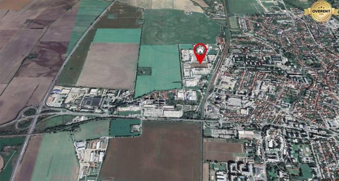 Okolie pozemku je rovinaté a nachádza sa v priemyselnej lokalite, kde sa nachádzajú administratívne budovy, sklady, výrobné haly a podobné zariadenia. V blízkosti sa nachádza železničná stanica a autobusová zastávka, čo umožňuje pohodlnú dopravu z a do lokality. Okrem toho je pozemok dobre napojený na diaľničnú sieť.