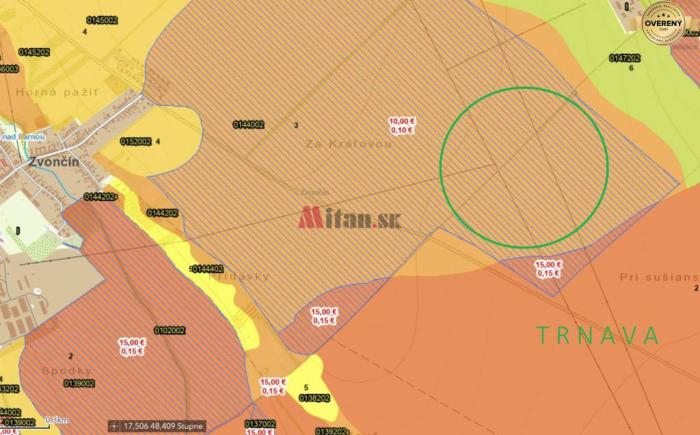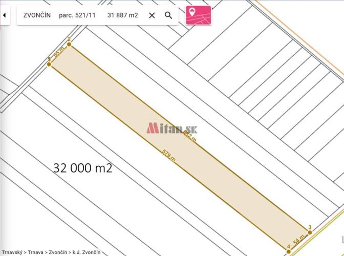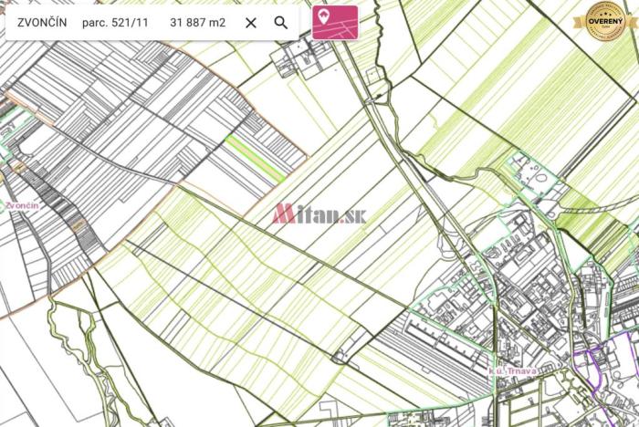 Ponúkame na predaj výnimočný poľnohospodársky pozemok pri Trnave. Tento rozľahlý pozemok o rozlohe 31 887 m² je ideálnou voľbou pre tých, ktorí hľadajú kvalitnú pôdu s potenciálom pre rozvoj a investície. Pozemok má priamy prístup z asfaltovej cesty a je možné ho v zmysle zákona o drobení poľnohospodárskej pôdy rozdeliť na 15 samostatných pozemkov, vhodných na drobné hospodárenie.