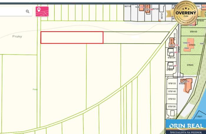Je to rovinatý pozemok v časti Domky pri hranici s Malinovom s celkovou výmerou 3237 m2, šírka 24m x dĺžka 134m na LV zapísaný pod písmenom C ako orná pôda. Cena 21€/m2. K dispozícii je aktuálna UPI.