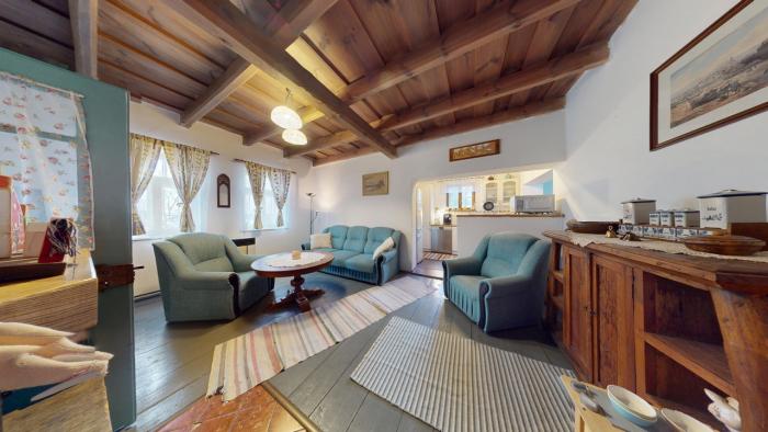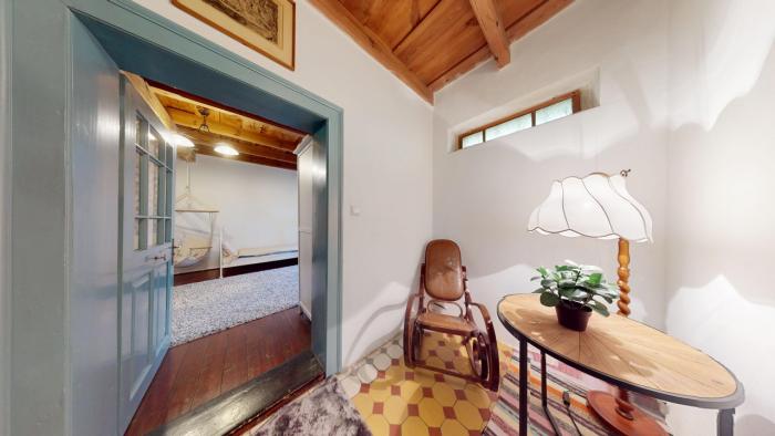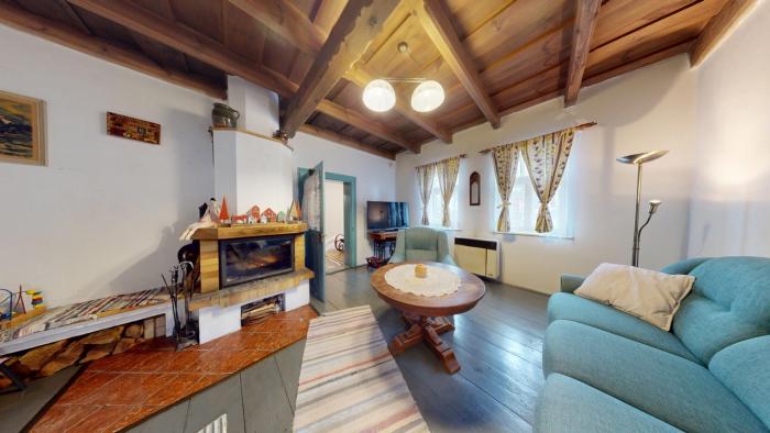 Dispozične je dom členený v prízemí na zádverie, predizbu, obývaciu izbu s krbom, kuchyňu, jedálenskú časť, letnú izbu, spálňu, kúpeľňu so sprchovým kútom a WC, schodisko. V obytnom podkroví sú dve spálne. V dome sú zachované pôvodné historizujúce prvky, drevené stropy, drevené interiérové kazetové dvere s pôvodným kovaním a zárubňami, podlahy „palubovky, keramická kachľová pec v kuchyni, rôzne drobné historické artefakty a štýlové doplnky.
