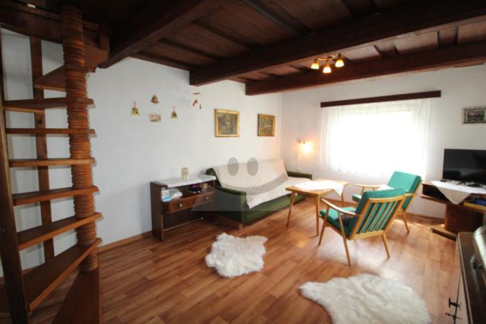 Dispozícia pozostáva zo zádveria, špajze kuchyne, spálne a obývacej izby s výstupom do obývacieho podkrovia, kde sa nachádzajú dve plnohodnotné izby s možnosťou dostavby ďalšej izby.