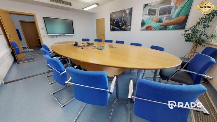 3. podlažie - kancelárie, zasadačka, archív - sklad, kuchynka, hygienické príslušenstvo, schodisko, výťah.