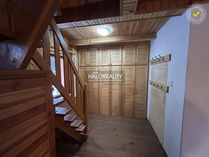 1NP: Cez vchodové dvere vstupujeme do jedálne, ktorá sa nachádza po pravej strane a je prepojená s obývacou izbou po našej ľavej strane. (Vykurovanie zabezpečujú krbové kachle umiestnené v obývacej izbe). Oproti hlavnému vchodu je umiestnená kúpeľňa so sprchovým kútom a oddelené WC. Napravo od nej je vstup do kuchyne. Kuchyňa je vybavená novou kuchynskou linkou na mieru, indukčnou varnou doskou, elektrickou rúrou, digestorom a chladničkou s mrazničkou. Vedľa kúpeľne je praktický šatníkový kút a schody vedúce na 2 NP.