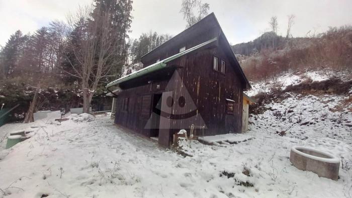 Na predaj útulná poschodová chata (36 m²) v Sklabinskom Podzámku, zasadená do tichej prírody v Kantorskej doline, priamo na južne orientovanom svahu pod Katovou skalou.