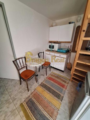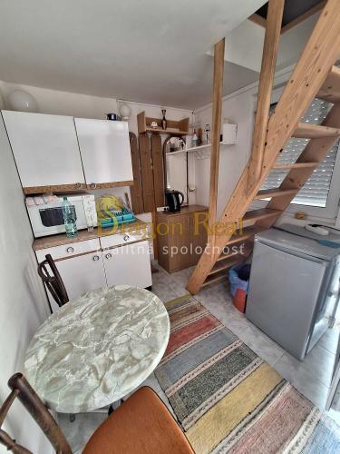 Prízemie: Vstupná chodbička, plne vybavená kuchyňa, kúpeľňa s WC, denná miestnosť.